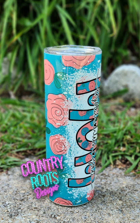 Personalized Floral Mama, nana, grammy, etc.. 20oz Skinny Tumbler