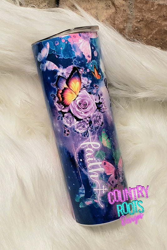 Faith Hope Love Butterflies 20oz Skinny Tumbler