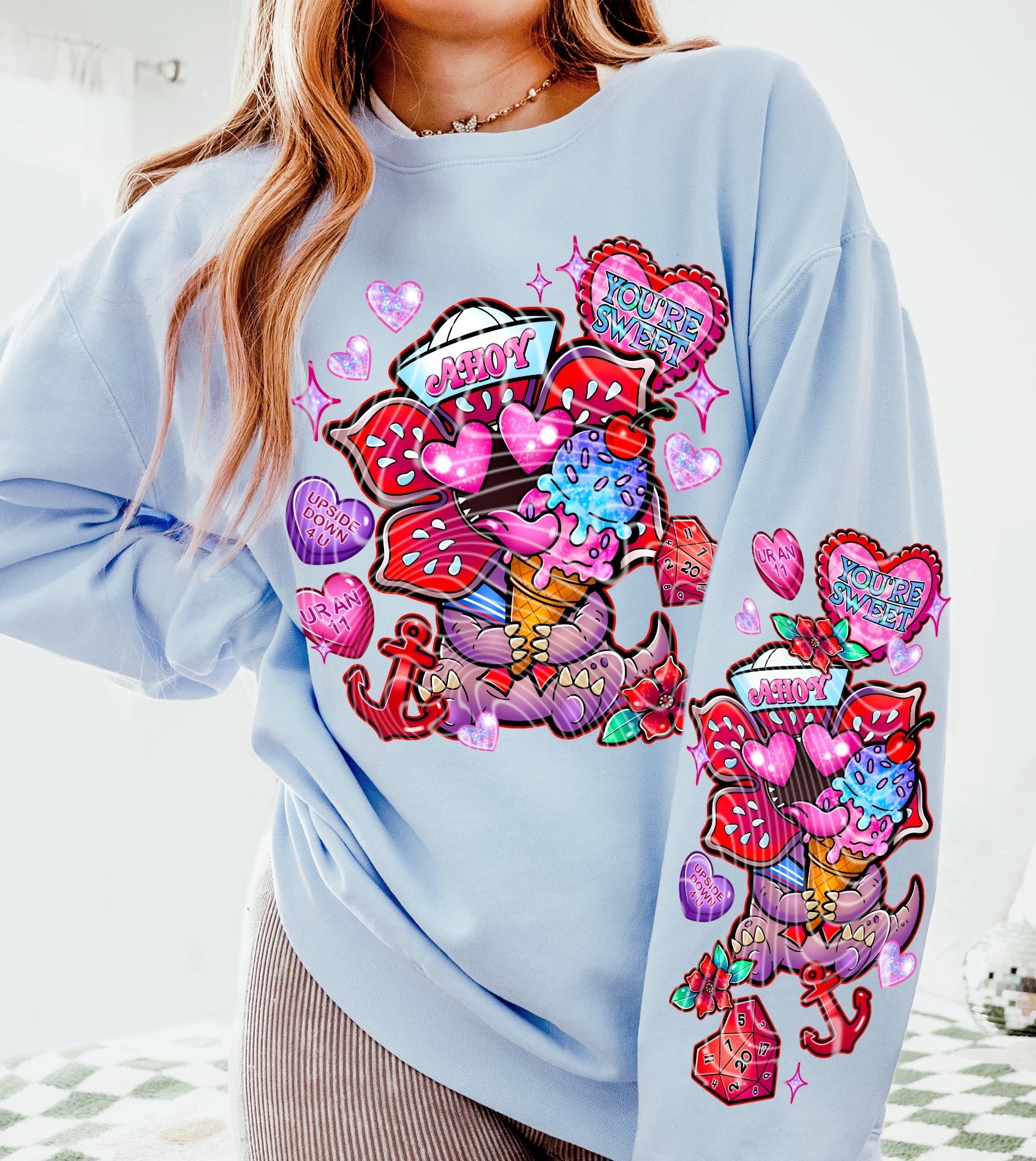 *Both hoodie & sweatshirt comes with front design and matching sleeves (Hoodie also comes with matching pocket design)